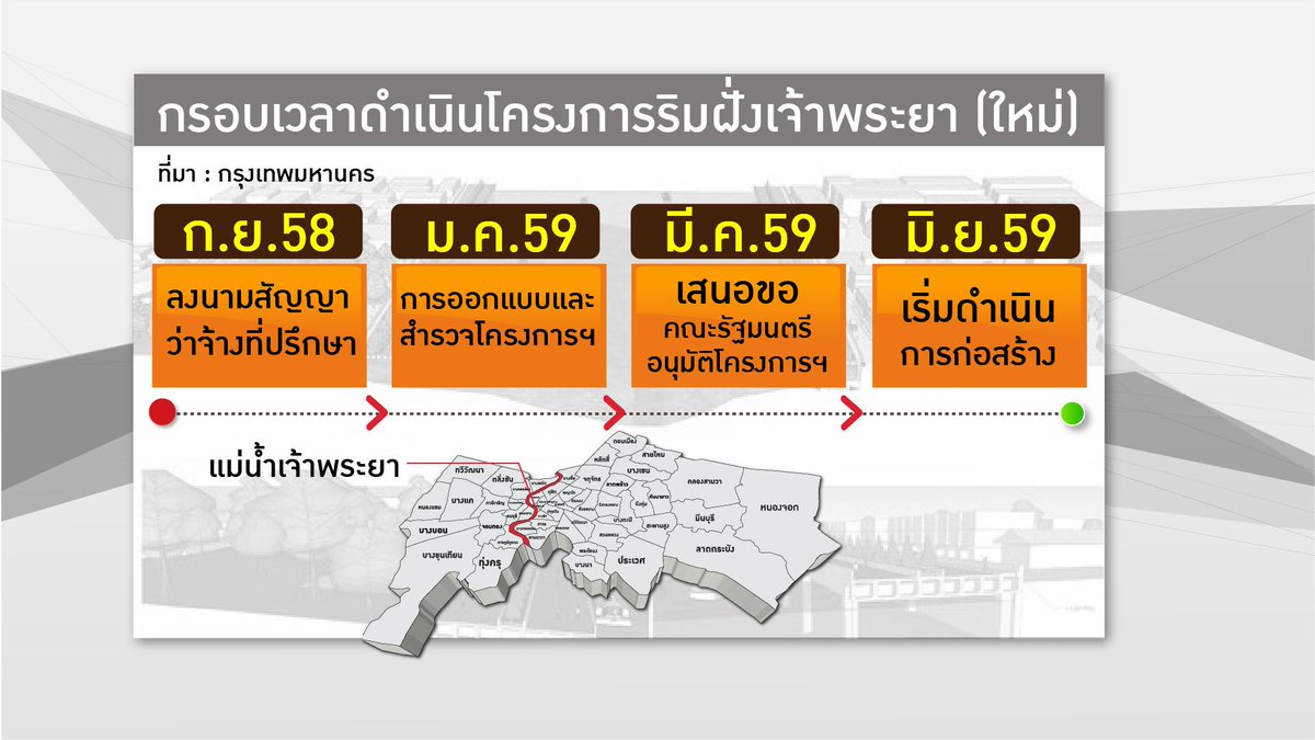 'พล.อ.ประวิตร' สั่งปรับแผนโครงการพัฒนาริมฝั่งแม่น้ำเจ้าพระยา ตามกรอบเวลาใหม่ คาดว่าเริ่มก่อสร้าง มิ.ย.59